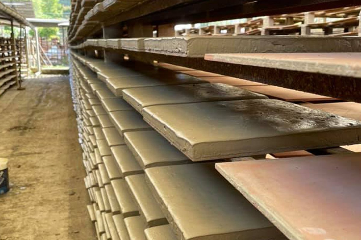 Sobald das Grundmaterial gereift ist, formen wir die Rohlinge der Fliesen und Platten, bevor sie viele Wochen auf einer Anhöhe in der