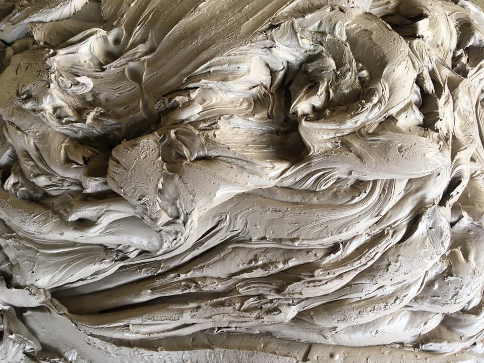 Das Grundmaterial, also Lehm und Wasser, lassen wir viele Wochen in großen überdachten Hallen, unseren Sumpfhäusern, reifen. Der Lehm muss dabei durchfeuchtet und formbar gehalten werden.