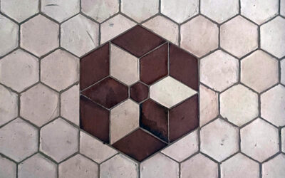 - Als Fliesen für die Sauna eigenen sich unsere Lehmfliesen besonders. Hier eine sechseckiger Schachbrett-fliesenmix für die Sauna im Schloss Prossen als Sonderanfertigung von uns.