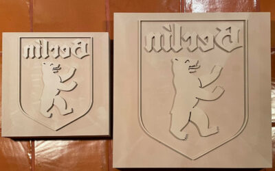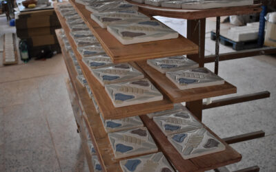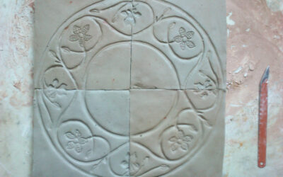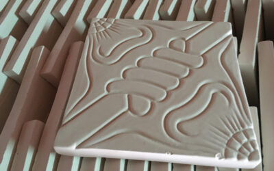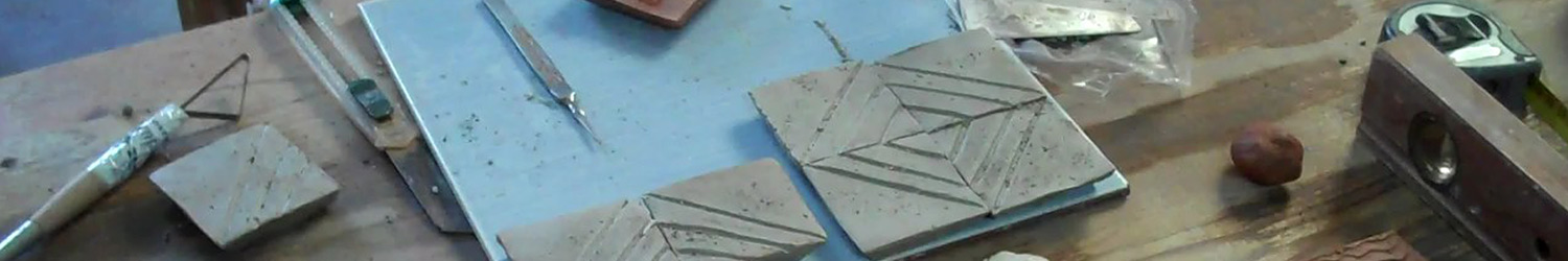 Für unsere Relieffliesen fertigen wir Stempel an, die in die jeweilige Lehmmischung das Motiv prägen. Danach werden die Fliesen je nach Anforderung weiterverarbeitet.
