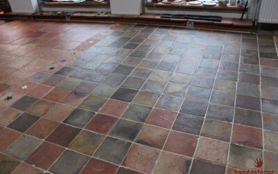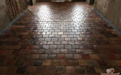 - Exklusive Bodenfliesen aus Terracotta mit schönen warmen Farbtönen: die Art Blättermann “Varia” von handgeformt.