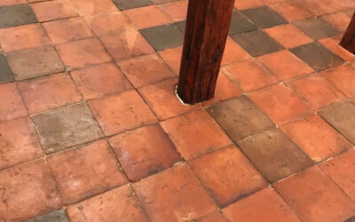 - In die roten Fliesen wurden einzelne braune und graue Fliesen eingelegt. So entstand ein interessanter und einmaliger Terracotta-Bodenbelag.