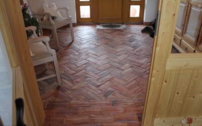 - Hier wurde im Fischgrätverbund verlegt, umgrenzt von einem schmalen Fries.