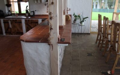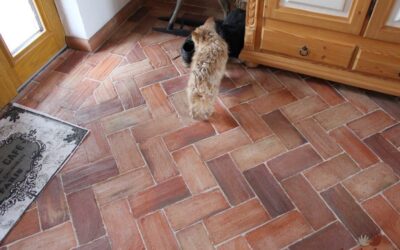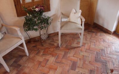 - Auf die Oberfläche der Terracotta-Fliesen wurde Bienenwachs aufgetragen und poliert. Ein natürlicher Schutz der Fliesen vor Feuchtigkeit und Beanspruchung.