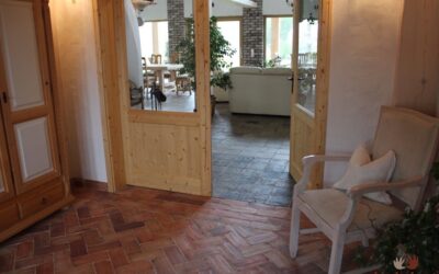 - Im Flur wurden die Ziegelfliesen Art Tegula mit ihrer charakteristischen Handstrich-Struktur verlegt.