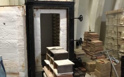 - Achtung heiß! Unser kleiner Brennofen in der Manufaktur Neuhardenberg. Hier werden Glasuren auf Fliesenrohlinge gebrannt.