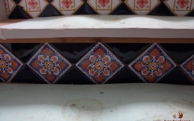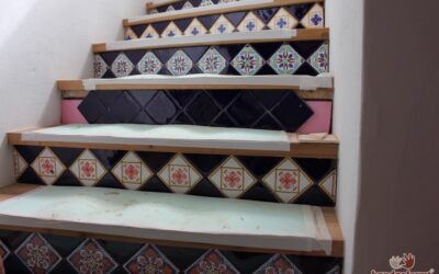 - Handbemalte Schmuckfliesen auf den Setzstufen der Treppe.