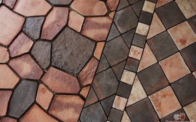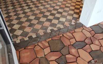 - rustikale Bodenfliesen im Format 10×10 cm in verschiedenen Fliesenarten und Verlegeformen.
