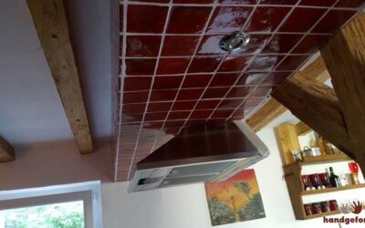 - Glasierte Art Levis Wandfliesen auf einer Deckenverkleidung in der Küche.