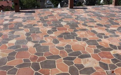 - Die fertige Terrasse mit witterungsbeständigen und rutschsicheren Terracotta-Fliesen.
