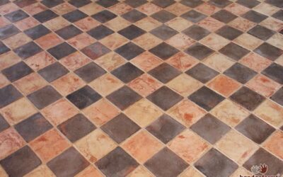 - Rustikale Bodenfliesen im kleinen quadratischen Format (10×10 cm)