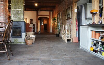 Nun befinden sich dort – wo einst die Pferdefuhrwerke standen – unsere sechseckigen Art Atrum Fliesen unter dem Esstisch und ihre eher schwarz-grauen Färbung liefert dort einen wirklich angenehmen Kontrast zur unverputzten Ziegelwand. In den 3 Gäste-Appartements liegen Art Blättermann Fliesen über den Fußbodenheizungen und beide Modelle unserer Bodenfliesen erfüllen dort nicht nur ihre technische Aufgabe, sondern bilden mit ihrem Aussehen den idealen Abschluss für einen wirklich authentischen Landhausstiel.