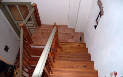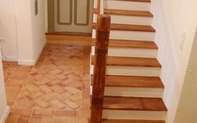 Am Anfang stand ein ländliches Haus mit Treppenaufgang und charakteristischen alten Türen in blauer und brauner Farbe. Unsere Aufgabe bestand darin, durch verschiedene Bodenbeläge aus Terracotta-Fliesen einen zusätzlichen Akzent zu setzen. In enger Abstimmung mit unserem Auftraggeber haben wir uns in der Küche für einen Sternboden entschieden. Konkret bedeutet dies, dass wir die Sternfliesen Art Stella in einem ausgeklügelten Verlegemuster präsentieren. Gemeinsam mit den Terracotta-Fliesen haben wir im Viererverband verlegt, sodass ein durch und durch symmetrisches Muster entstanden ist. Quadratische Terracotta-Fliesen werden dabei von kleineren Rechtecken eingerahmt, an deren Eckpunkte jeweils eine kleinformatige Sternfliese platziert wurde. Wir sprechen in diesem Kontext von 1:1 Verlegung, bieten jedoch auf Wunsch auch noch andere Verlegetechniken.