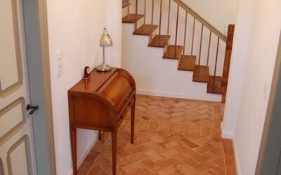 - Im Flur kamen Art Blättermann Terracotta-Fliesen im Format 14×28 cm zum Einsatz.