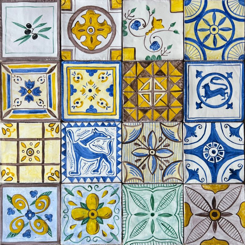 Handbemalte Wandfliesen-Unikate aus gebranntem Lehm