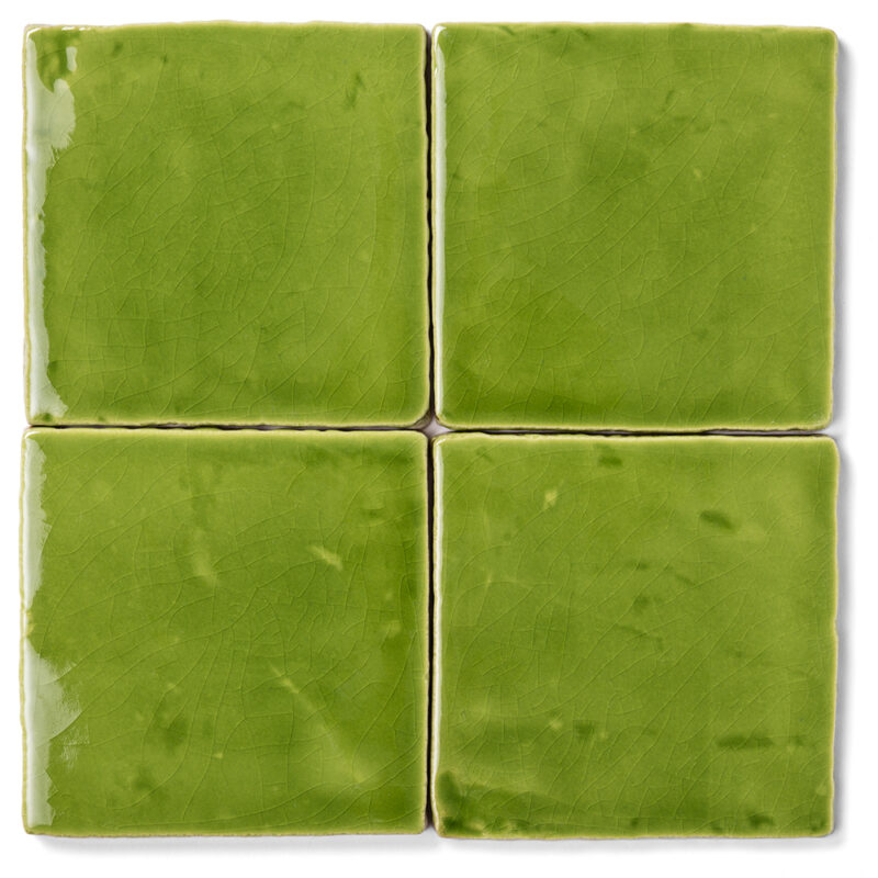 Jede Wandfliese aus Lehm hellgrün handglasiert