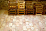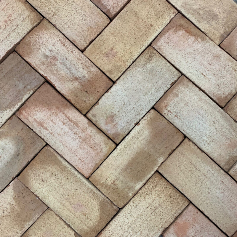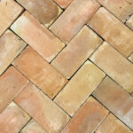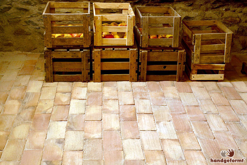 Die Rückseite der Ziegelfliese “Tegula” in Halbverband und Fischgrätenmuster verlegt und gewachst