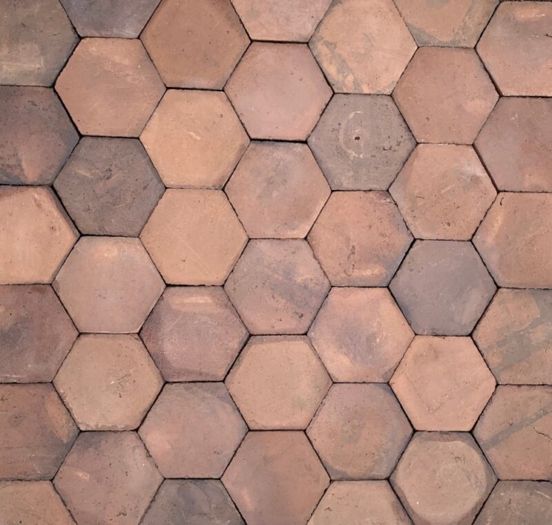 16 x ca. 2,0 sechseckige Bodenfliesen Sechsecke braun 16x2cm - kombinierbar mit Favus grau und rot - Ziegleiprodukt: gebrannt im Ringofen mit Mandelschalen - Farbabweichungen, Größenabweichungen sind für Ziegeleiprodukte normal