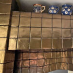 Goldene Wandfliesen: Handgefertigt, aus Lehm gebrannt und einseitig glasiert (Nr. 60)