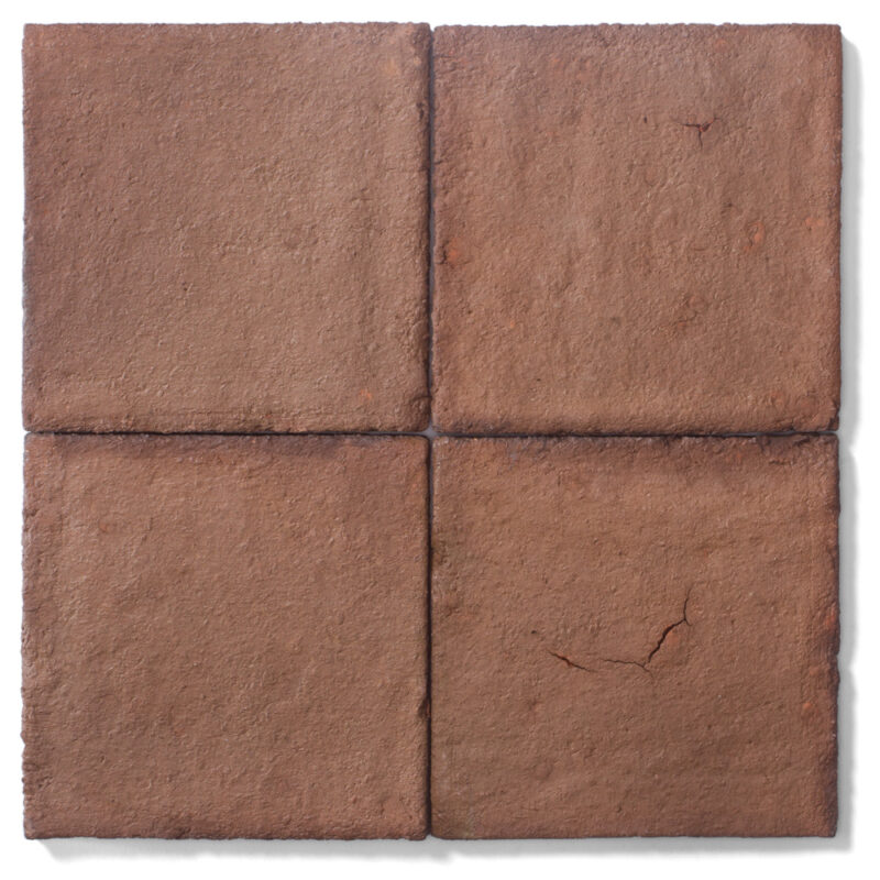 Beim Brand entsteht nicht nur die Farbe, sondern auch die charakteristische, rutschfeste Oberfläche, die mit ihrer narbig-rissigen Struktur, kleineren Einschlüssen, Spalten, Klüften und Hohlräumen an historische Terracotta-Fliesen angelehnt ist und sich sowohl optisch und als auch qualitativ deutlich von industriell gefertigten Zement-Imitaten abhebt.
