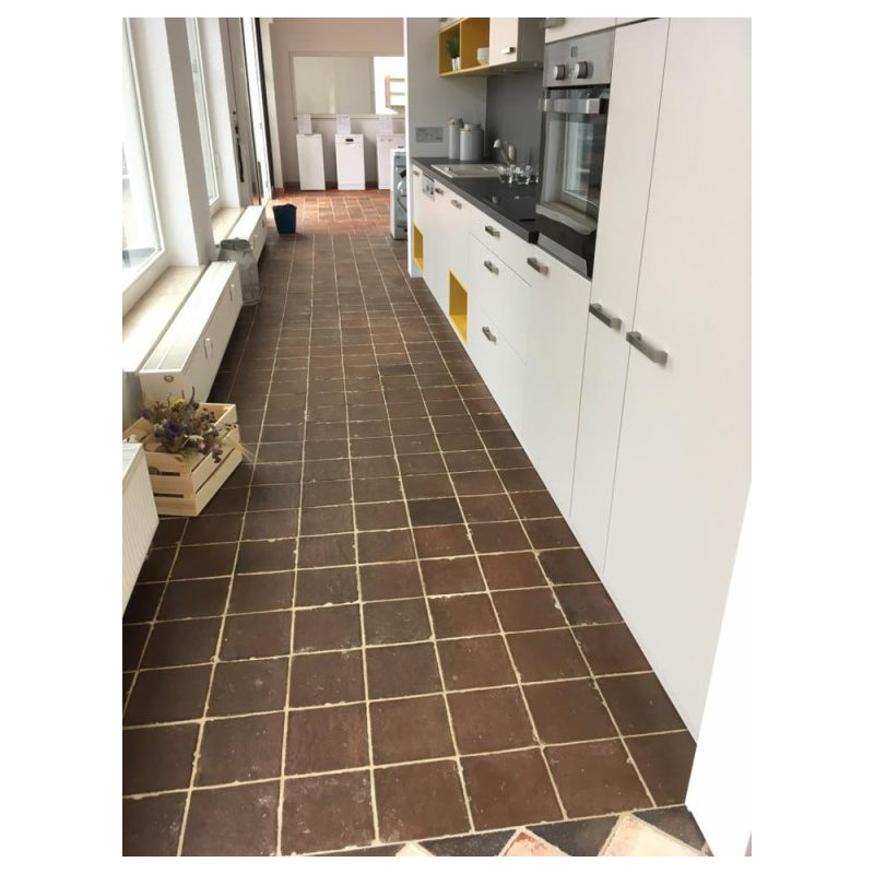 20 x 20 x ca. 1,5 Handgeformte Bodenfliese aus echtem Terracotta - Ziegleiprodukt: gebrannt im Ringofen mit Mandelschalen - Farbabweichungen, Größenabweichungen sind für Ziegeleiprodukte normal