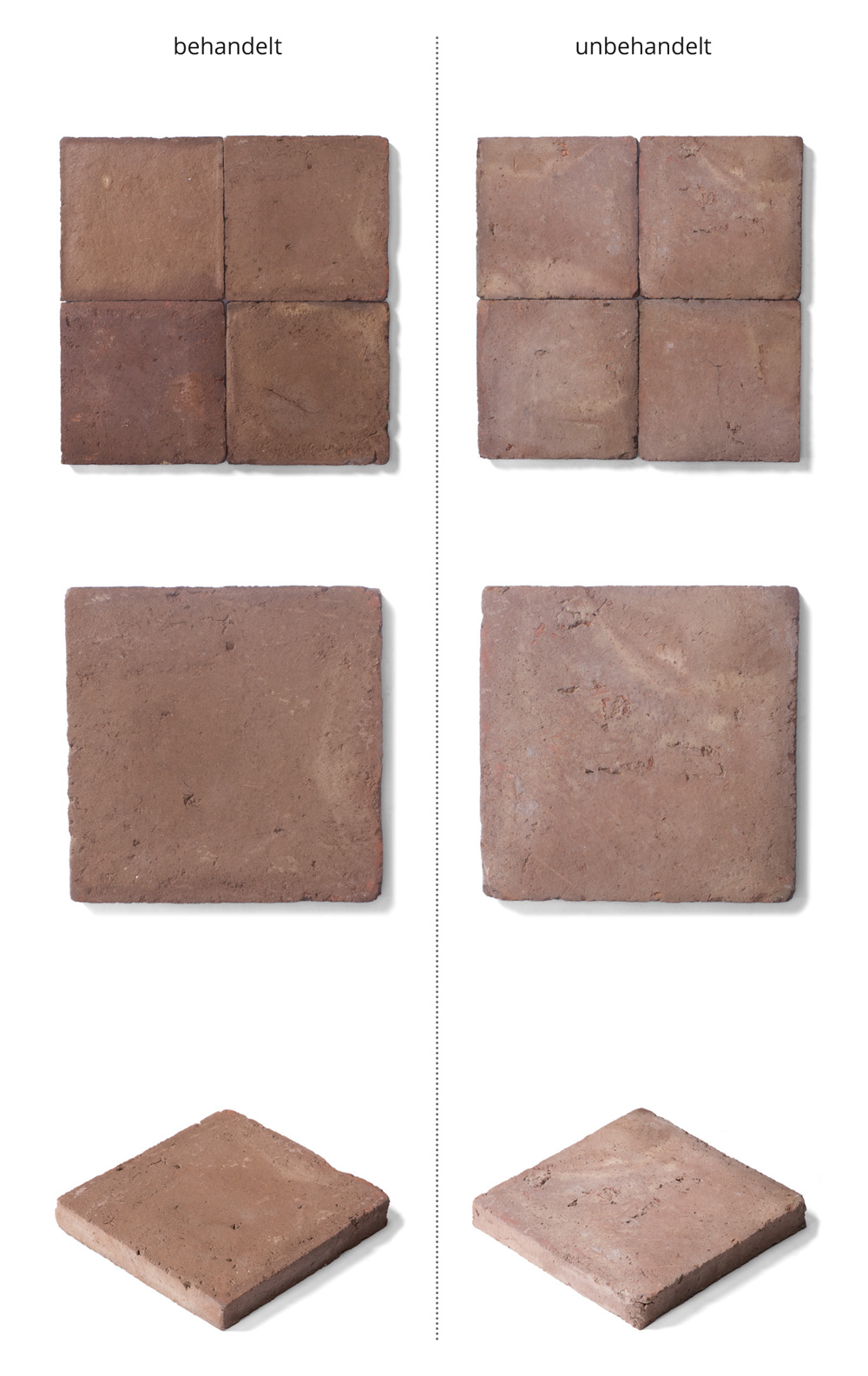 Hinweis Farbangaben: Unsere Fliesen sind frei von chemischen Zusätzen und werden aus Erden gebrannt. Um die Farbtöne zu erzeugen, verwenden wir eigene Mischungen. Der Brand hinterlässt sein eigenes Farbspiel auf den Fliesen. Nach dem Brand werden die Fliesen noch einmal per Hand nach Farben sortiert. Die Farbigkeiten können von den Abbildungen abweichen. Im keramischen Prozesse entstehen einzelne Chargen, die nicht reproduzierbar sind.