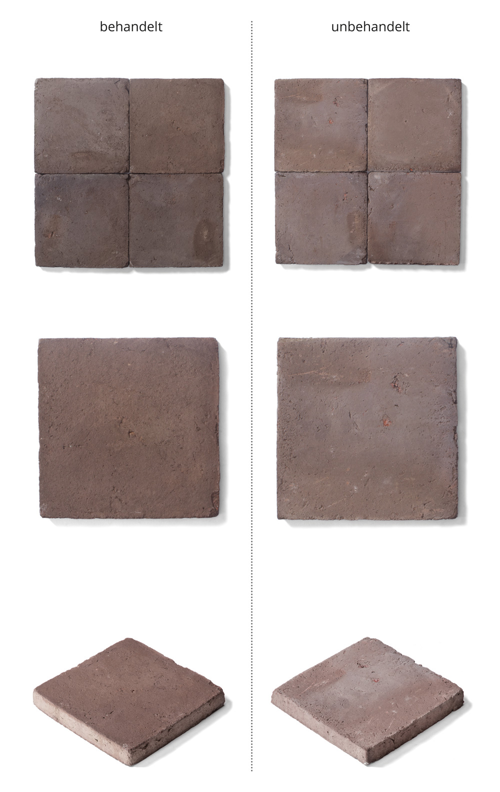 Hinweis Weiterbehandlung: Fliesen und Platten werden unbehandelt geliefert. Wir empfehlen dringend eine Erstbehandlung mit unserem Fliesenwachs. Den Glanz bestimmen Sie selbst: » Glänzende Akzente mit Wachs