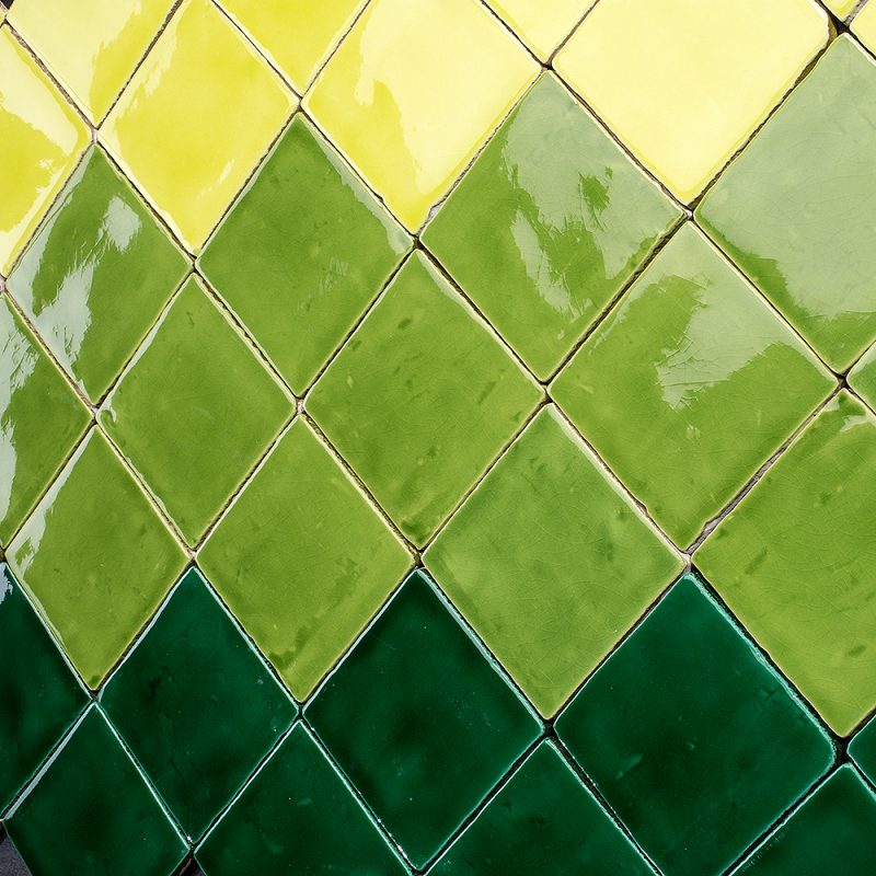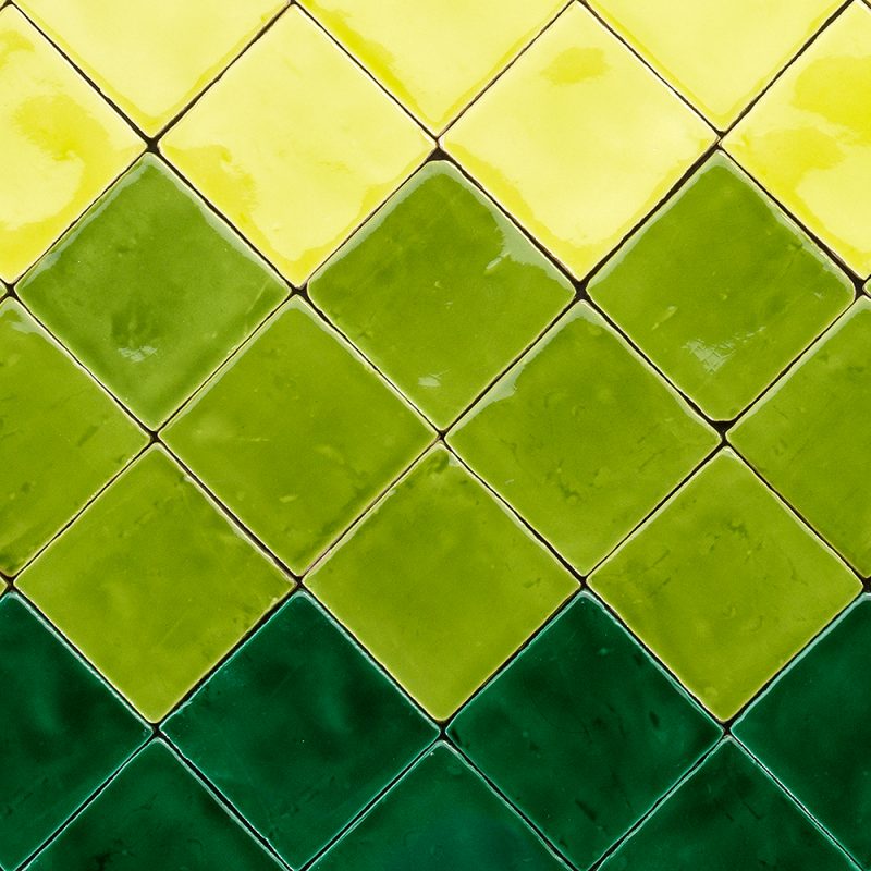 Handgefertigte, aus Lehm gebrannte und einseitig glasierte Wandfliese, Tony´s Küchenspiegelkreationen, irish green-pistazie-forest green mix. Bei einer Musterbestellung müssen 3 ausgewählt werden, dass alle Farben geliefert werden.