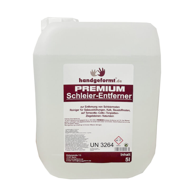 Unser hauseigener Schleierentferner dient der Entfernung von Schleier, und wird nach dem Verkleben der Fliesen, vor dem Verfugen angewandt, um Baustoffreste, Salzausblühungen sowie Kalk zu entfernen. Der Schleier-Entferner wird in einem 5 Liter-Kanister als Konzentrat geliefert, und entfernt Schleier effektiv von großen Flächen.