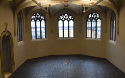 - Blick von oben auf den Wohnbereich und die Art Antiquus Bodenfliesen.