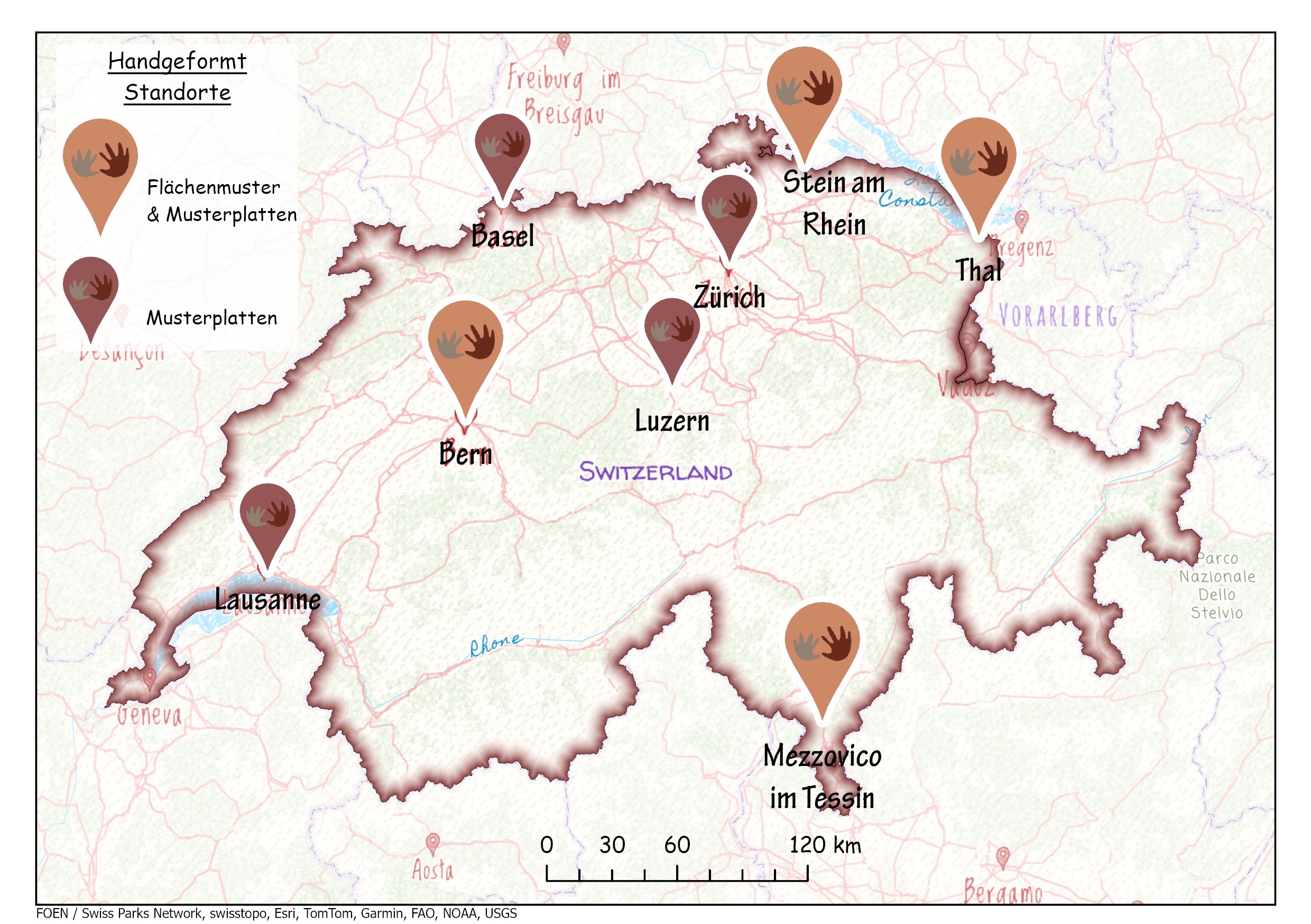 Basel, Bern, Zürich, Thal, Lausanne, Luzern, Mezzovico im Tessin und Stein am Rhein.